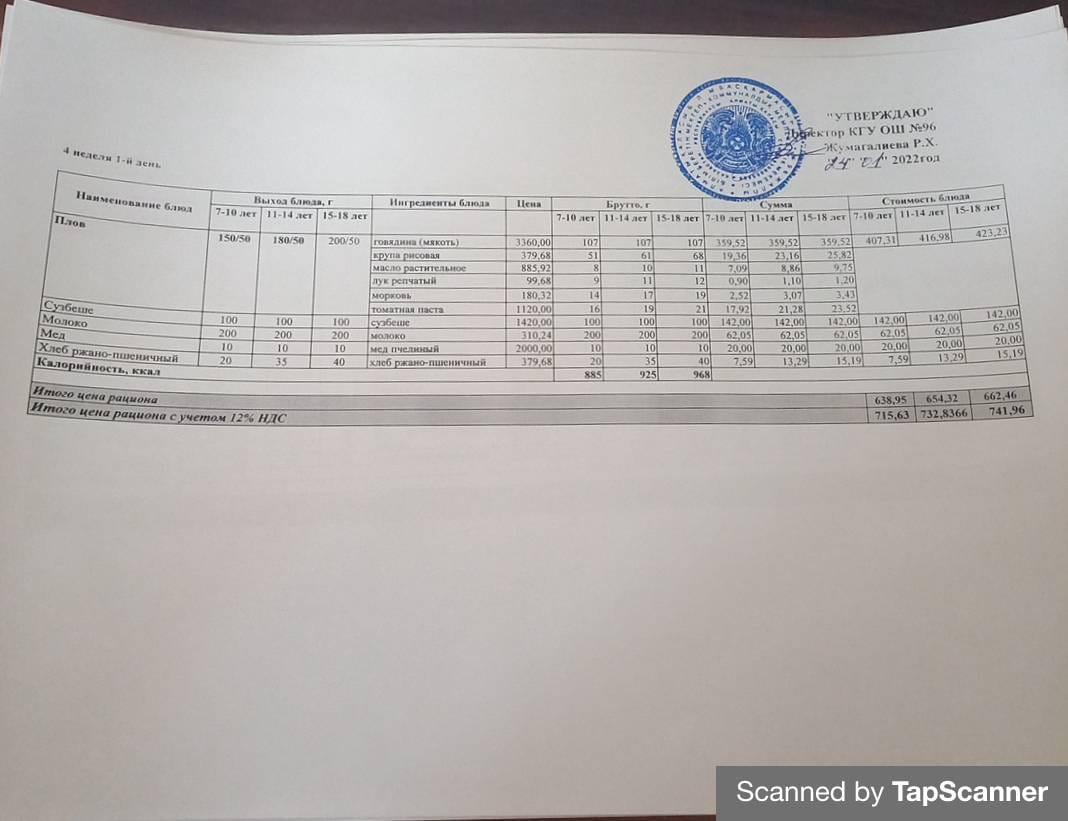 Четырехнедельное меню блюд для организации бесплатного питания отдельных категорий обучающихся в организациях среднего образования за счет бюджетных