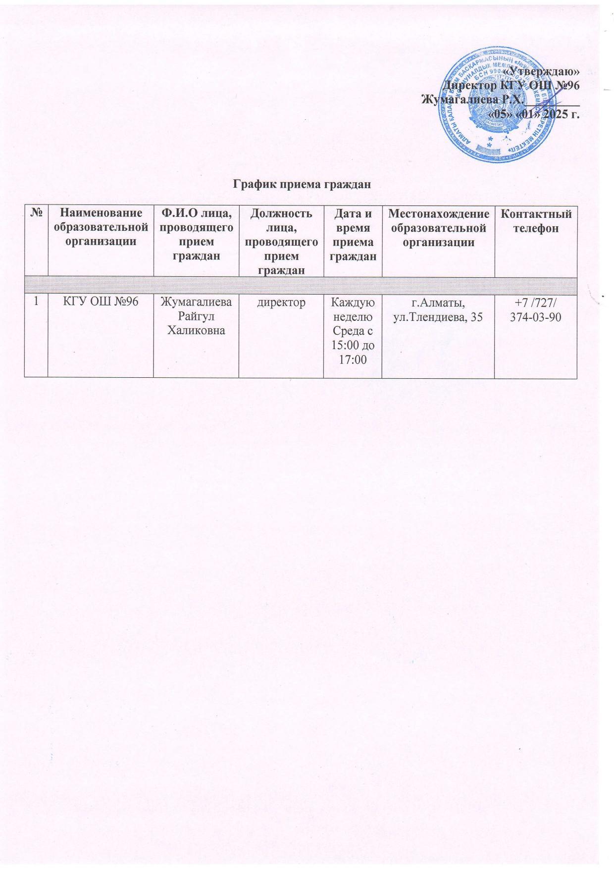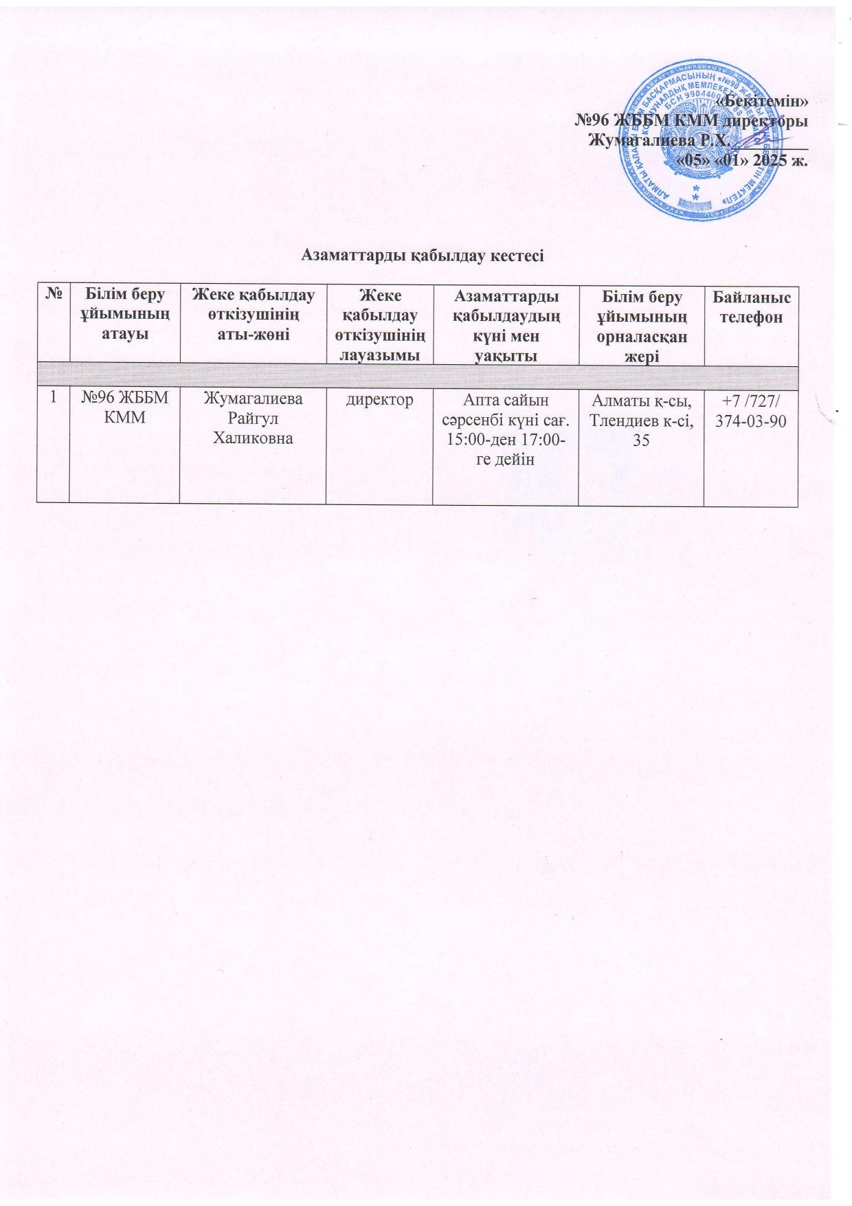 » Азаматтарды қабылдау кестесі/ График приема граждан