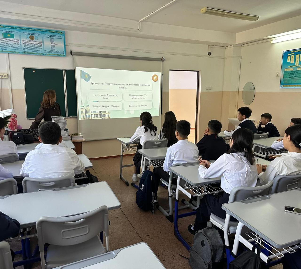 сынып сағаттары ұйымдастырылды. Мақсаты-оқушылардың мектепке деген оң көзқарасын қалыптастыру, елге деген сүйіспеншілігін арттыру, азаматтық жауапкершілік пен патриоттық сезімдерін нығайту.