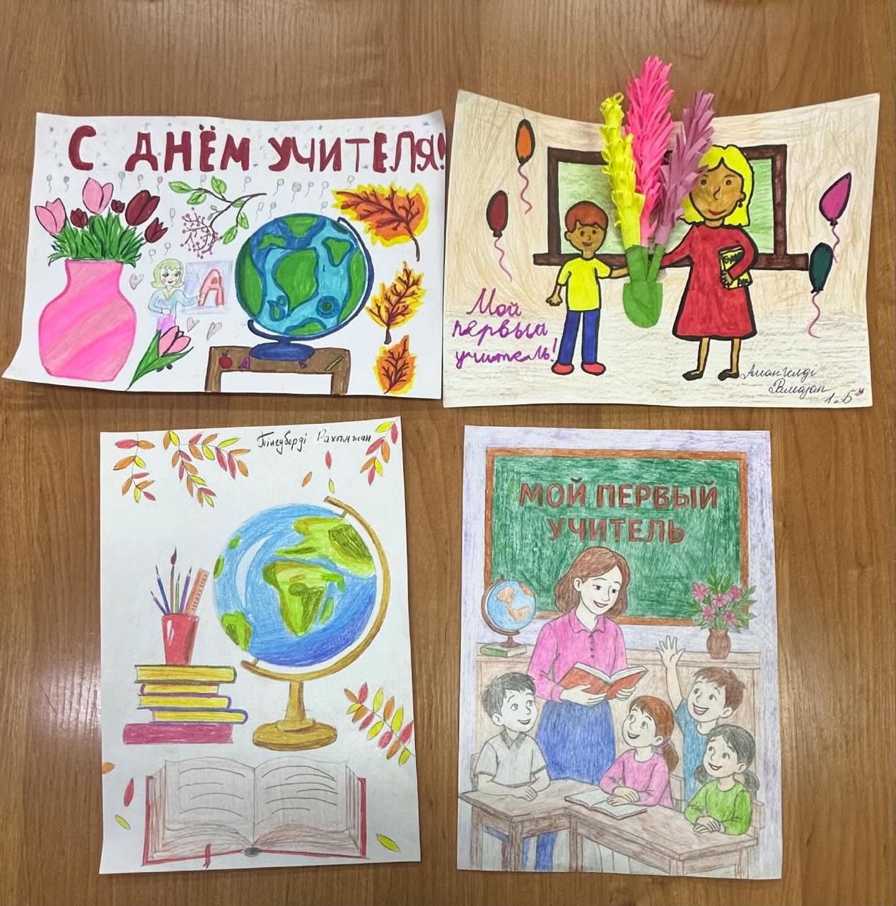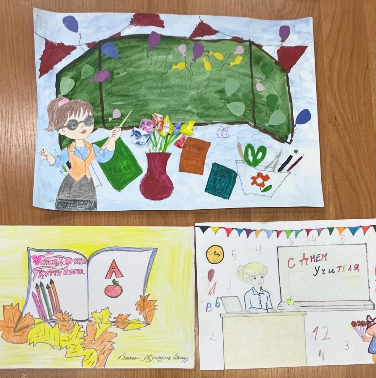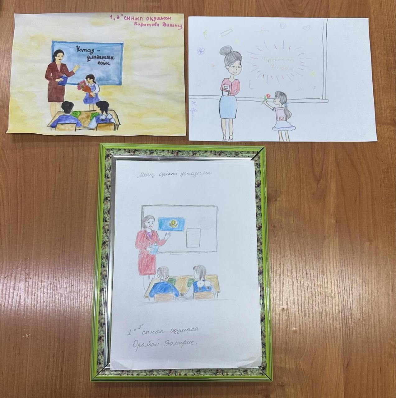 Оқушылар өз суреттерінде сүйікті мұғалімдерін бейнелеп, әрбір туындыға жүрек жылуы мен шынайы алғыстарын арнады.