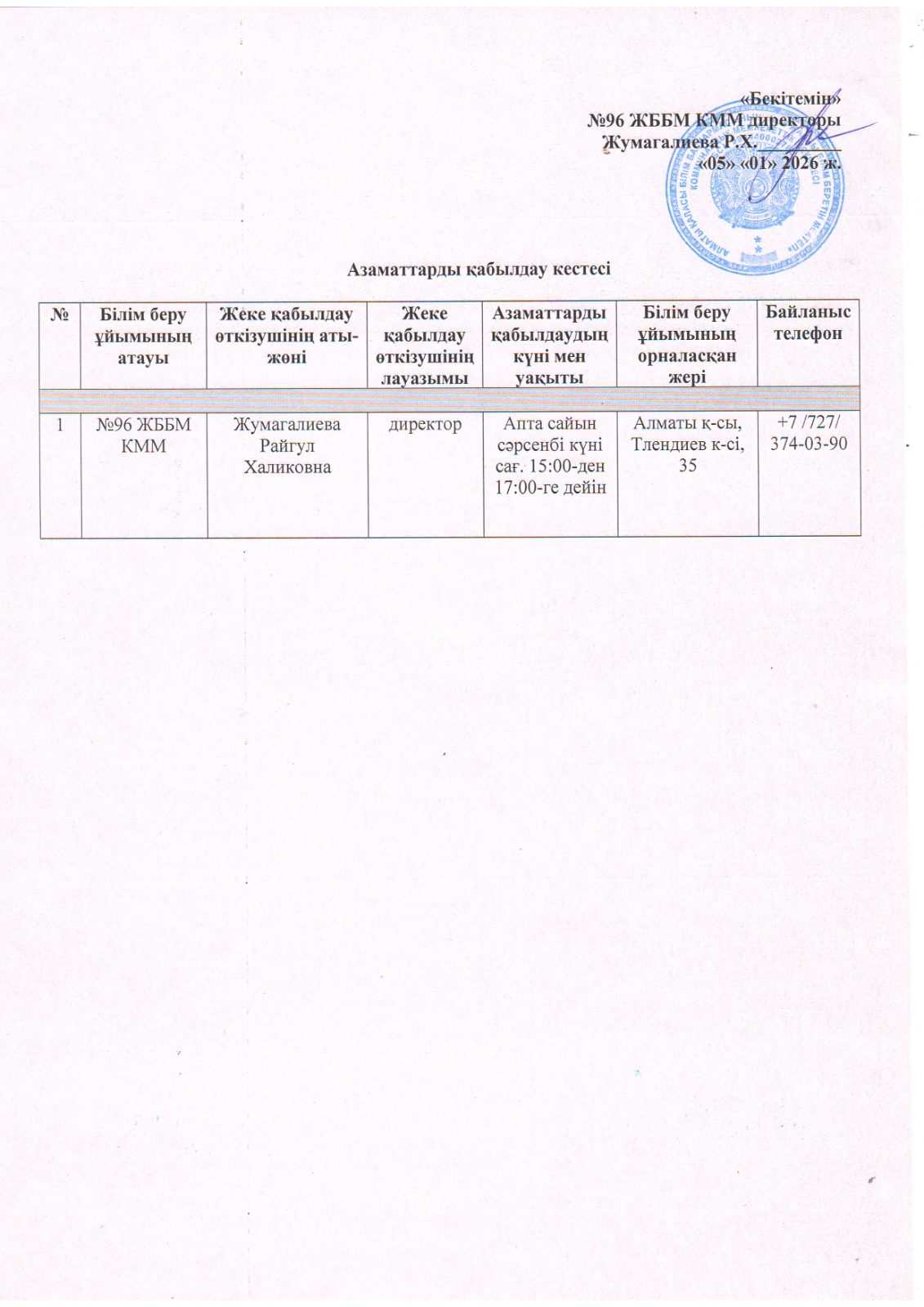 » Азаматтарды қабылдау кестесі/График приема граждан