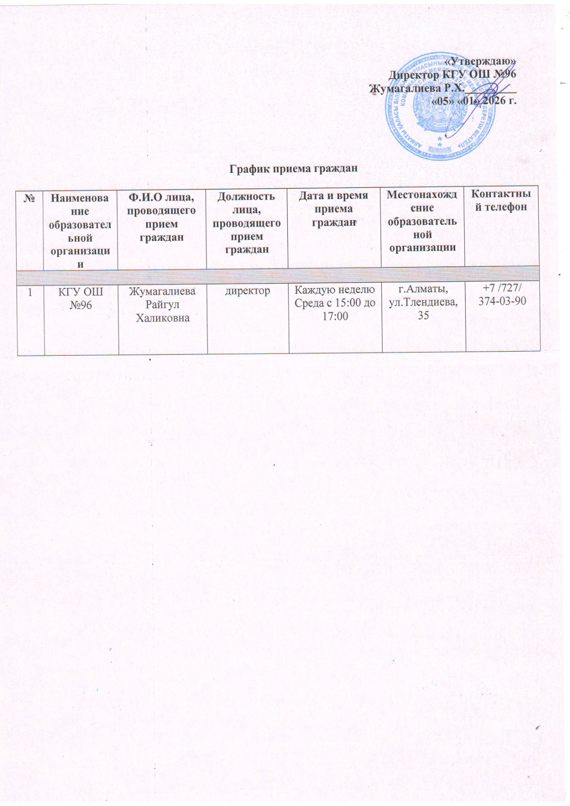 Азаматтарды қабылдау кестесі/ График приема граждан