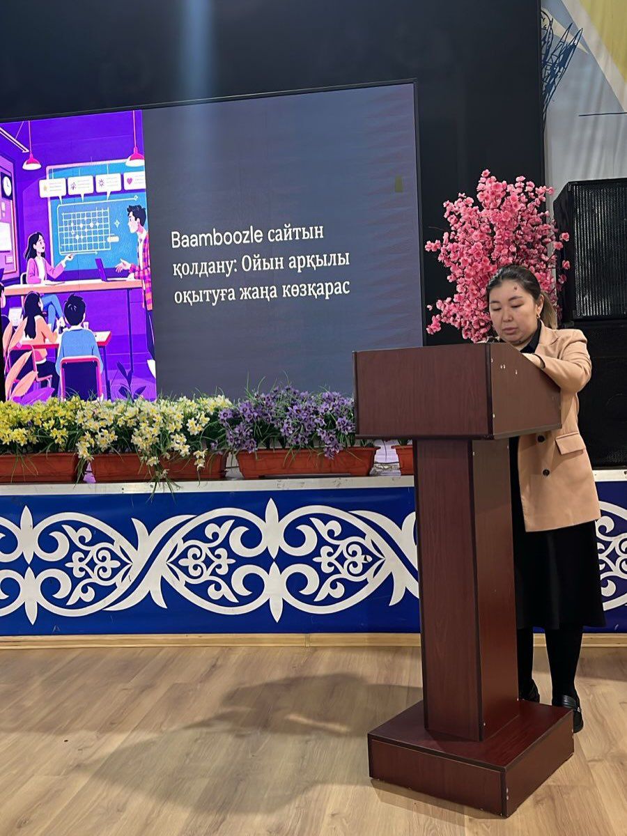 Әдемі Сәкенқызы Baamboozle платформасы арқылы грамматикалық материалды қайталаудың интерактивті әдісін ұсынып, білімді тексеру үдерісін қызықты ойын форматына айналдырудың жолдарын көрсетті.
