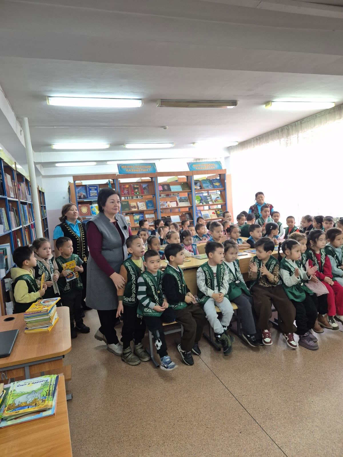 * Мазмұны: Оқушыларға жаңадан келген көркем әдебиеттер, ертегілер мен энциклопедиялар таныстырылды. Кітапханашы кітапты ұқыпты ұстау ережелері мен оқу мәдениеті туралы айтып берді.