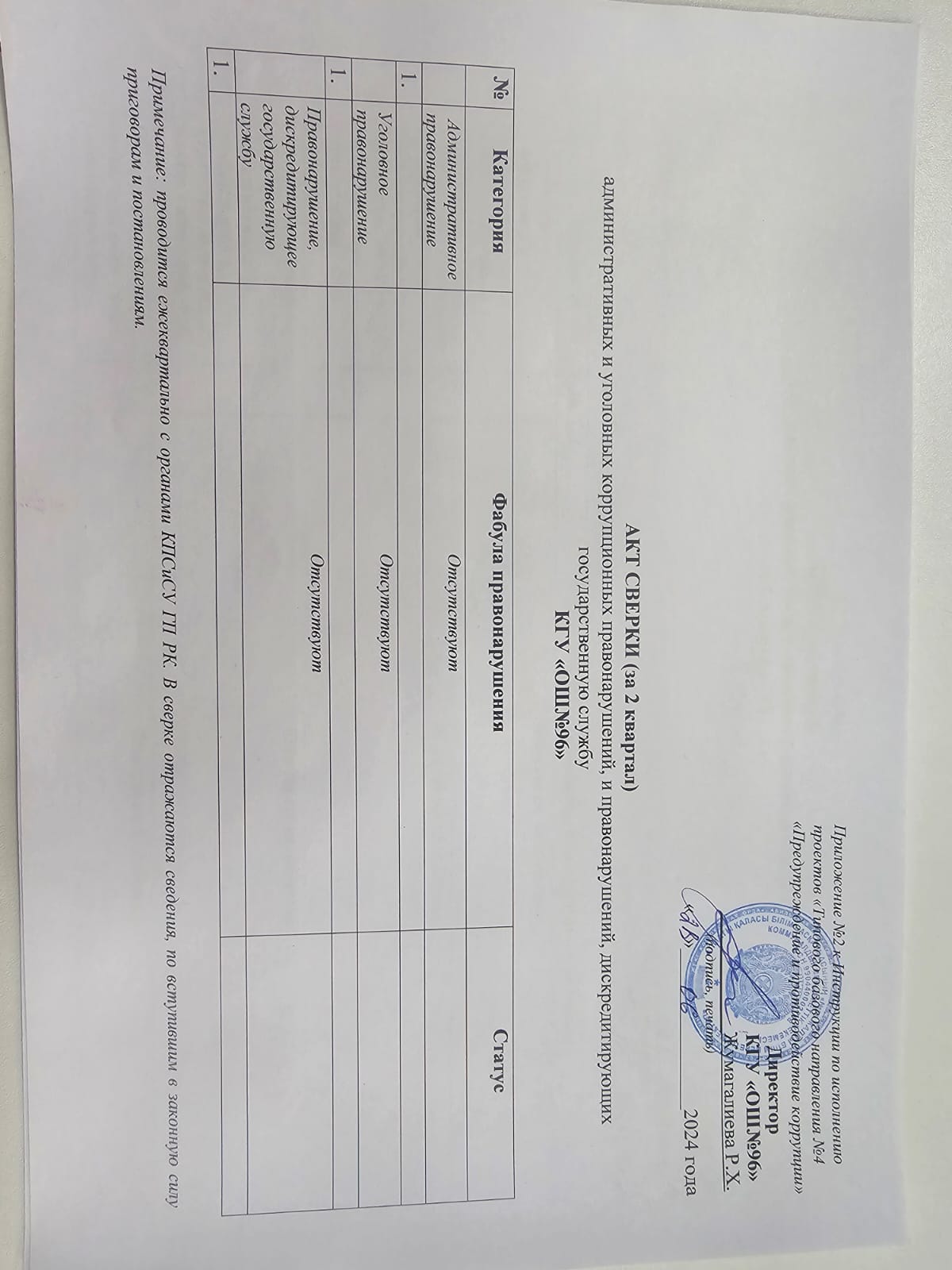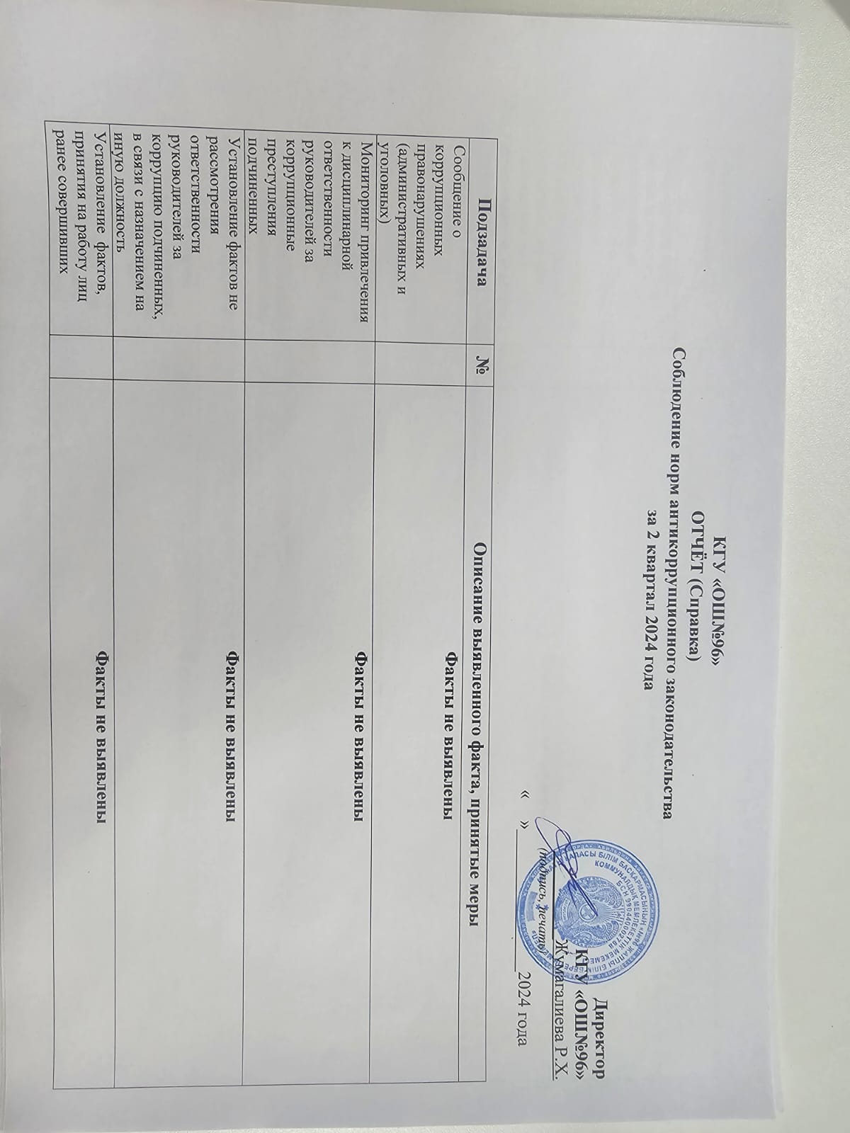 28 маусым 2024 0 1 2 3 4 5 АКТ СВЕРКИ (за 2 квартал) КГУ ОШ №96 /ОТЧЁТ (справка) Соблюдение норм антикоррупционного законодательства