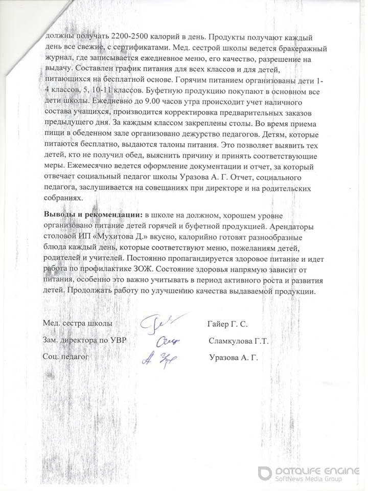 Отчет о работе по организации питания обучающихся за I квартал 2017 год по КГУ ОШ№96
