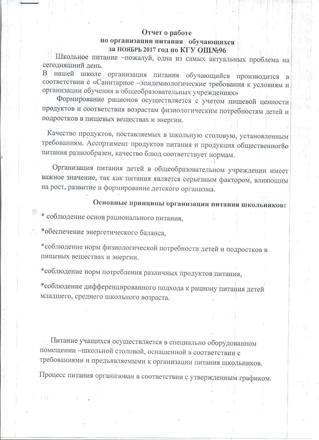 15 қараша 2017 0 1 2 3 4 5 Отчет о работе по организации питания обучающихся за НОЯБРЬ 2017 года по КГУ ОШ №96