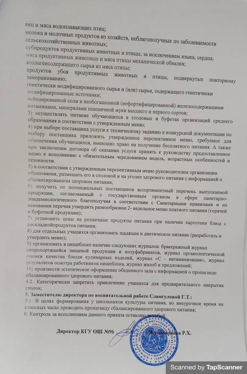 26 тамыз 2021 0 1 2 3 4 5 Приказ "Об организации питания учащихся 1-11 классов и бесплатного питания для учащихся из социально-незащищенных (малообеспеченных) семей, детей-сирот и детей, оставшихся без попечения родителей за счет средств фонда Всеобуча"