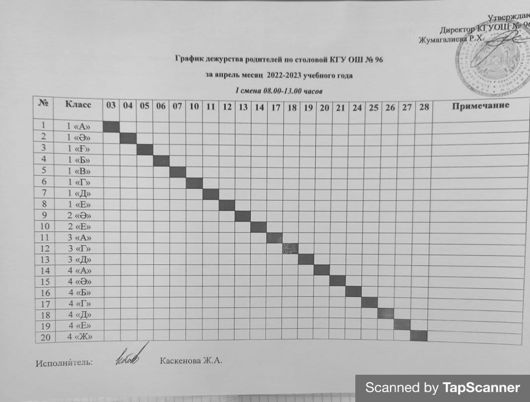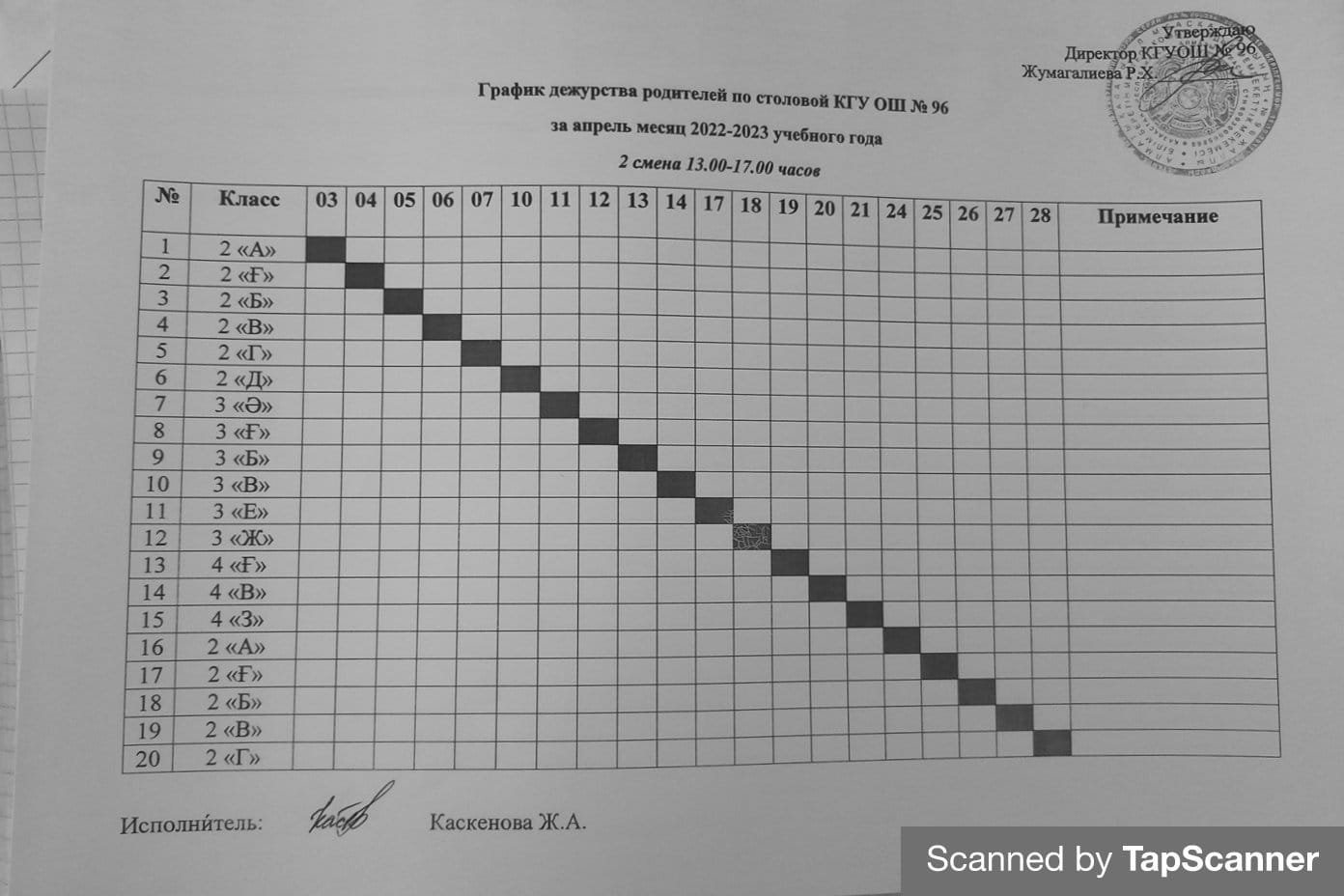 03 сәуір 2023 0 1 2 3 4 5 График дежурства родителей по столовой КГУ ОШ №96 за апрель месяц 2022-2023 уч. год