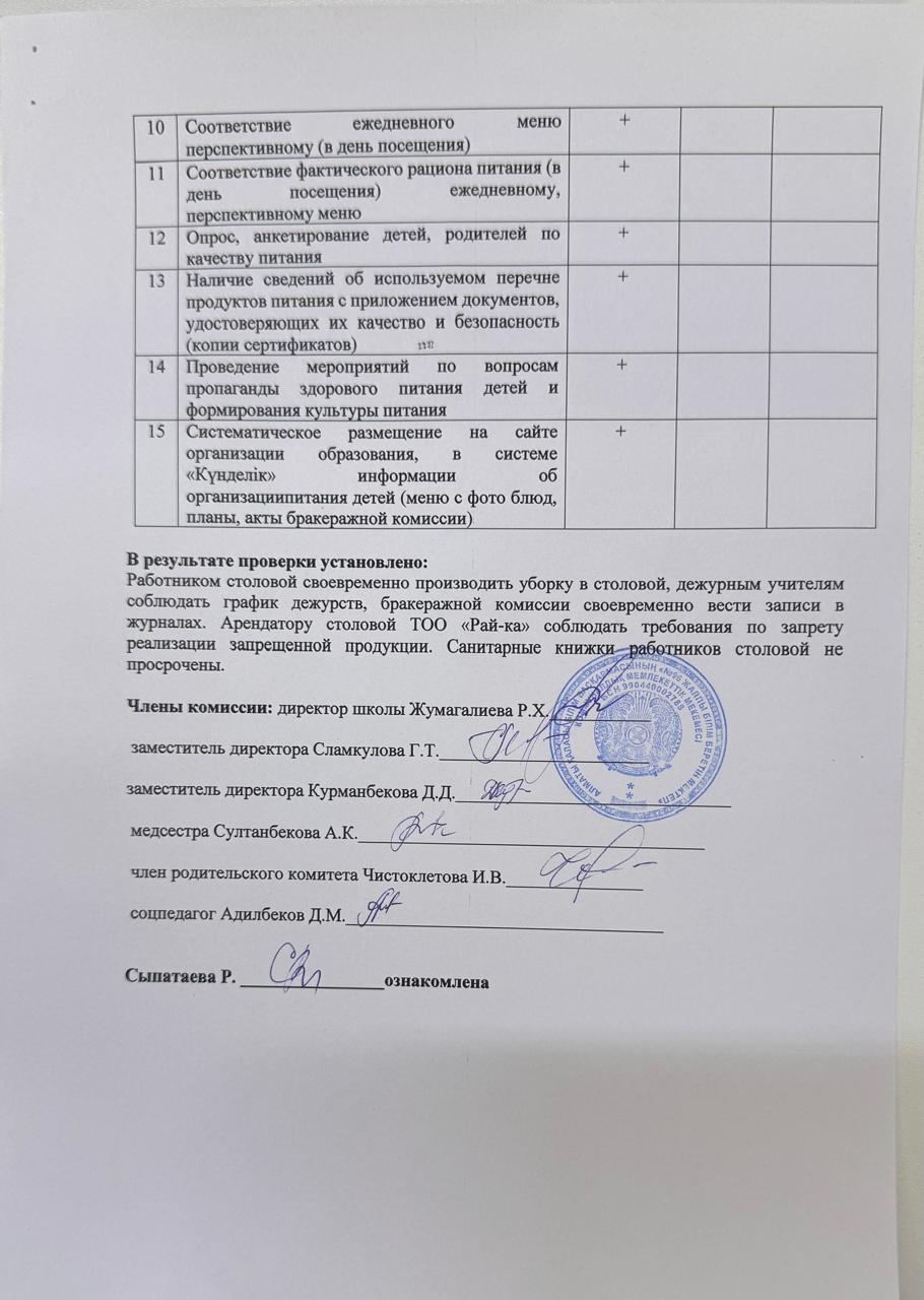 15 қазан 2025 0 1 2 3 4 5 АКТ №4 №96 ЖББМ КММ асханасында дайындалатын тамақтың сапасын тексеру/ АКТ №4 по контролю за качеством питания КГУ ОШ №96