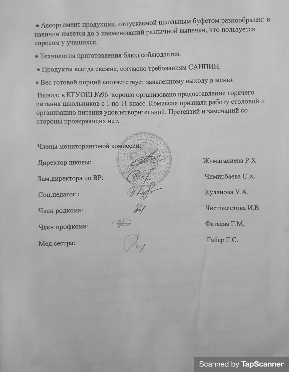 АКТ №5 Мониторинг комиссии по контролю бесплатного питания КГУ ОШ №96 бракеражной комиссии