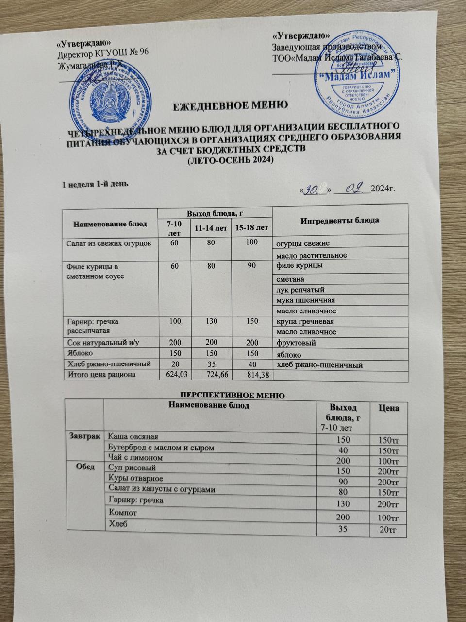 "Ас мәзірі 30.09.2024"