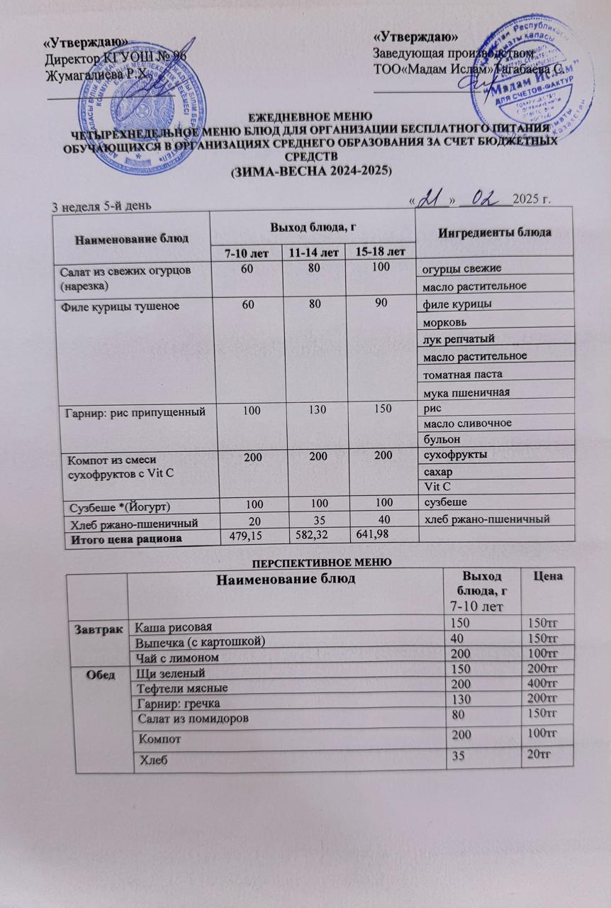 График дежурство учителей по столовой КГУ ОШ № 96 на 2024-2025 учебный год. 1-смена 08:00-13:00
