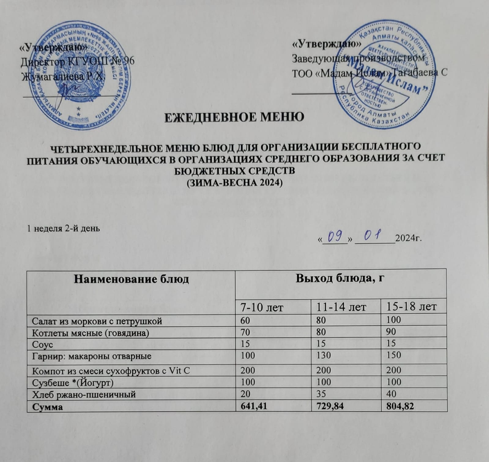 » Ас мәзірі 09.01.2024