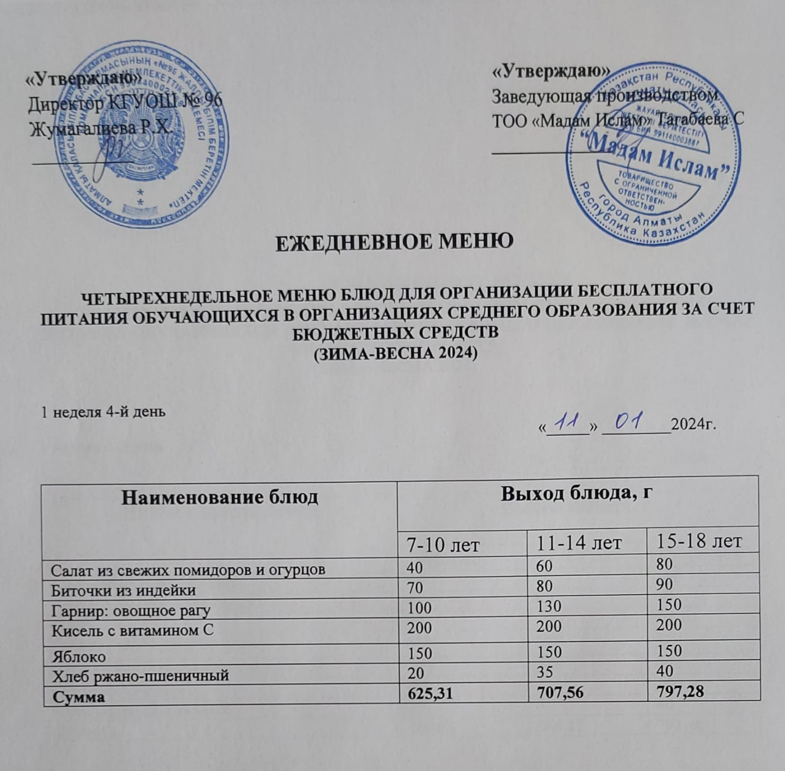 Ас мәзірі 11.01.2024