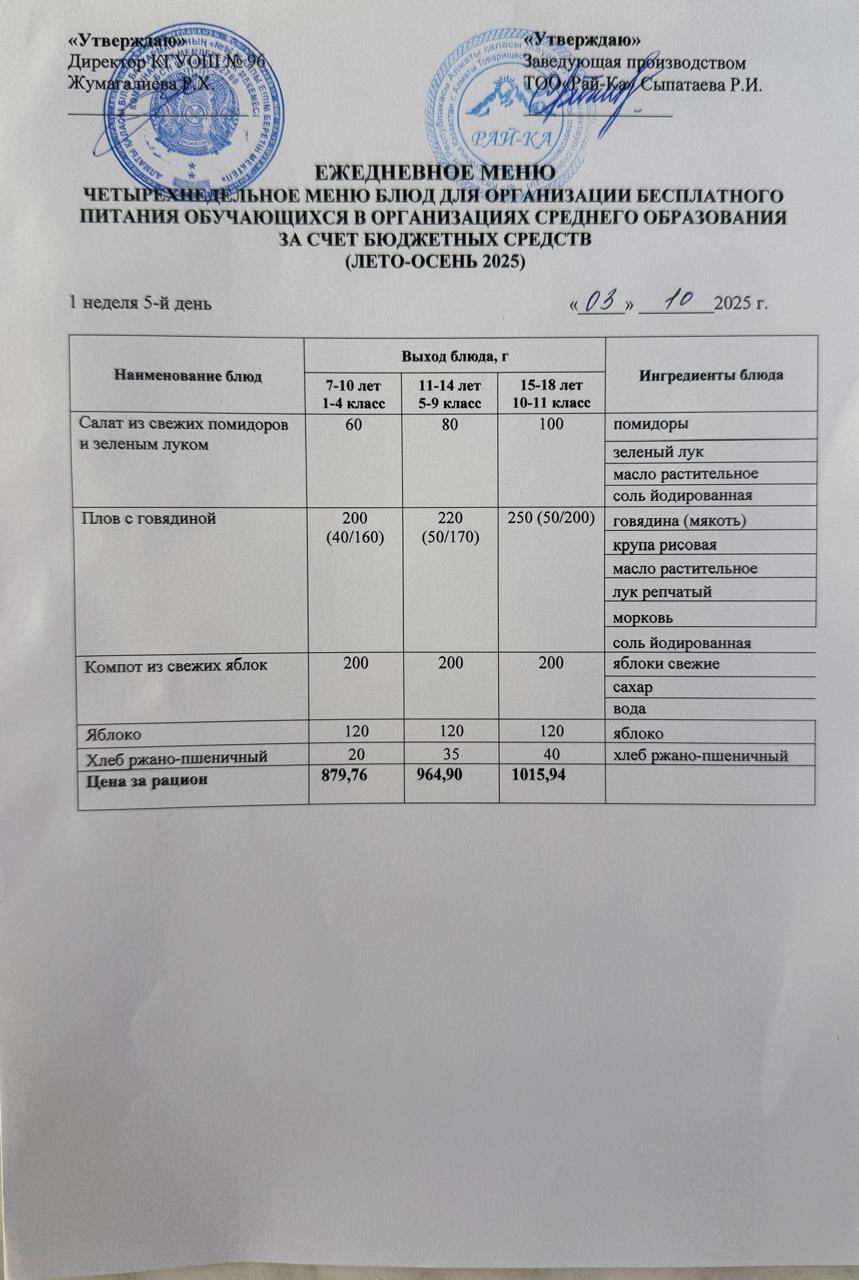 КГУ «Общеобразовательная школа №96» Управления образования г.Алматы
