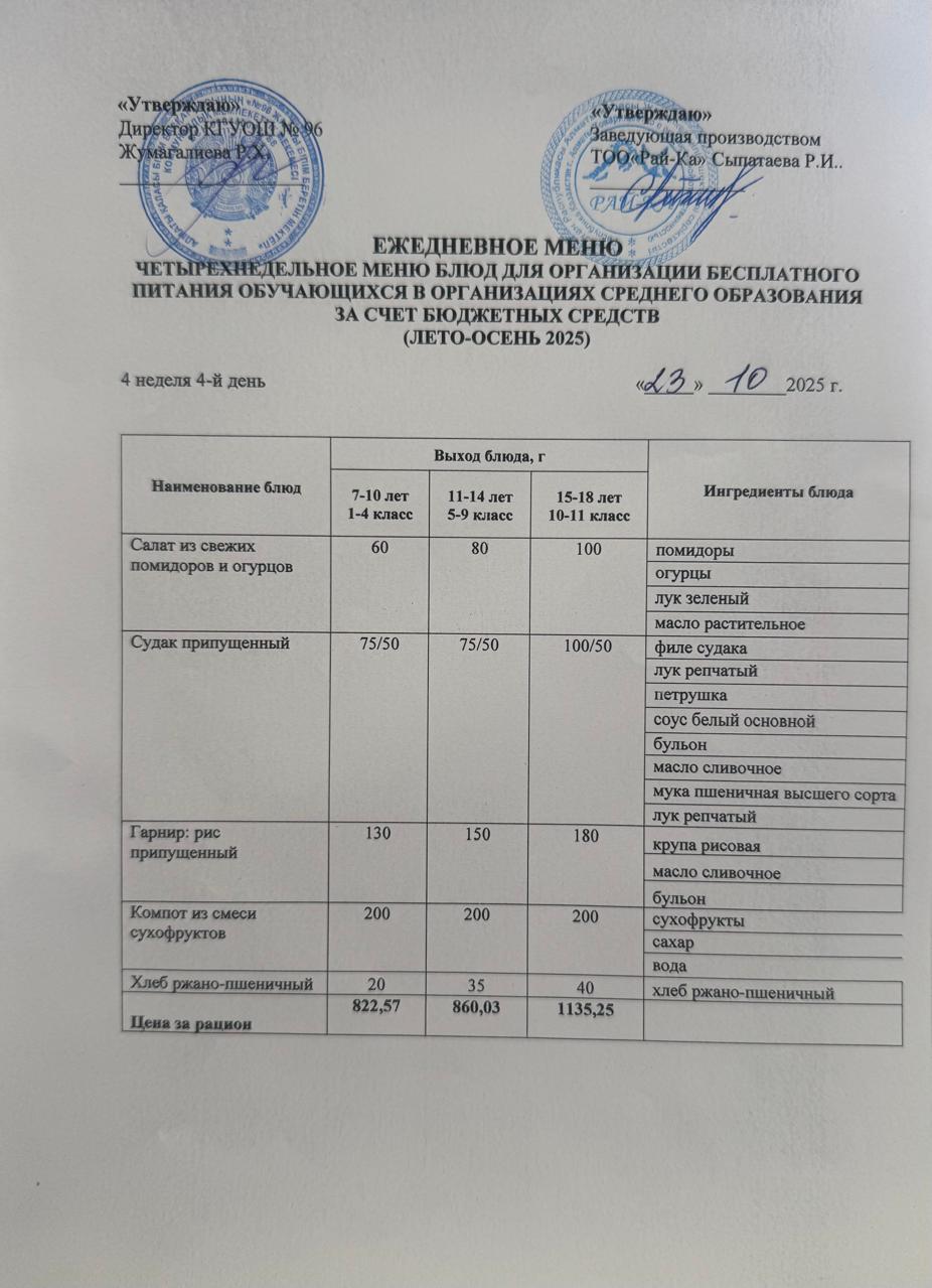 Ас мәзірі/Меню 23.10.2025