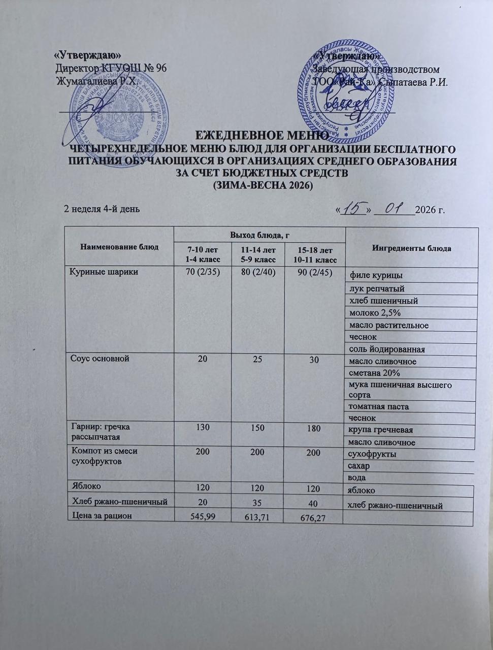 » Ас мәзірі/Меню 15.01.2026