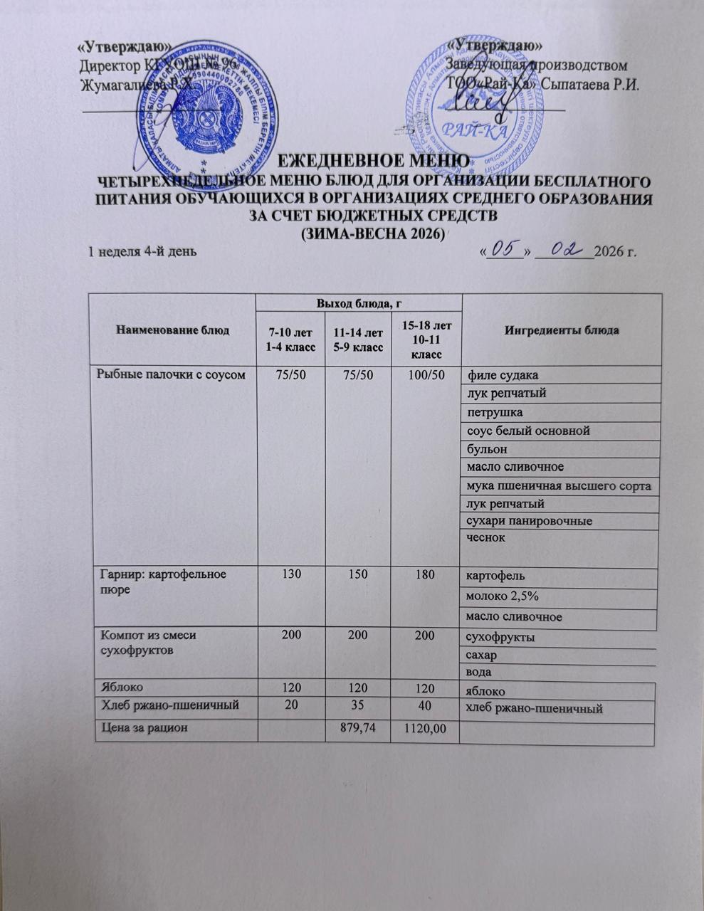 Ас мәзірі/Меню 04.02.2026