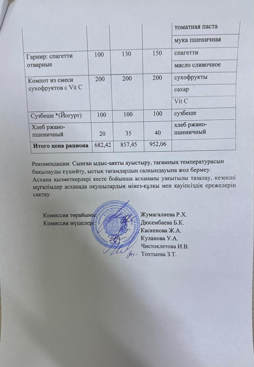 10 желтоқсан 2024 0 1 2 3 4 5 АКТ №7 №96 ЖББМ КММ мектеп асханасын тексеру тамақтану сапасын мониторингілеу жөніндегі комиссия