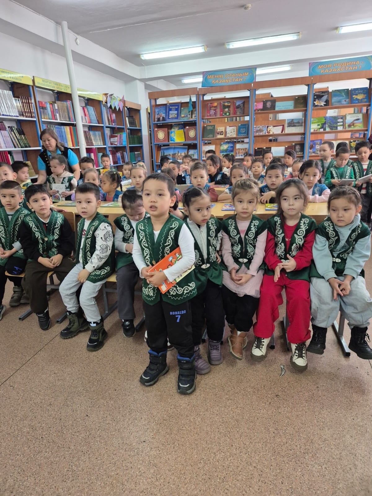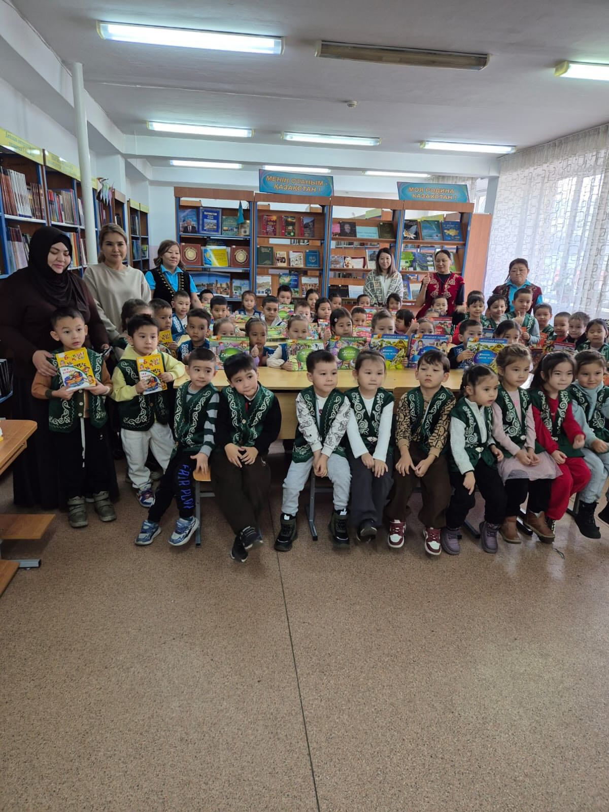 * Мазмұны: Школьникам жаңадан келген көркем әдебиеттер, ертегілер мен энциклопедиялар таныстырылды. Библиотекашы кітапты ұқыпты ұстау ережелері мен оқу мәдениеті туралы айтып берді.