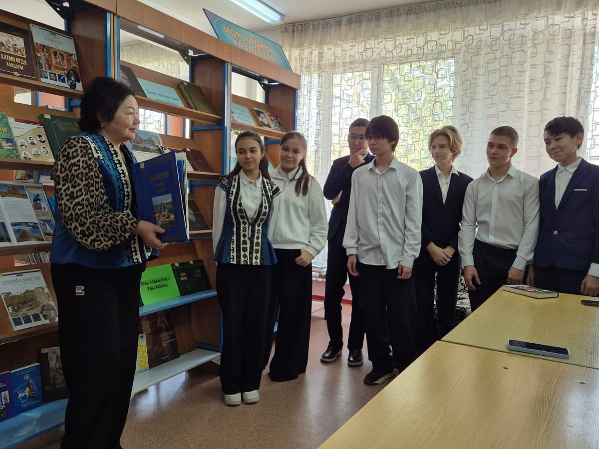 В преддверии Дня Республики в школьной библиотеке была организована книжная выставка «Қазақстан – менің Отаным». На выставку были приглашены ученики 8-х классов, которым представили литературу об истории казахского народа, его традициях и выдающихся личностях Казахстана.