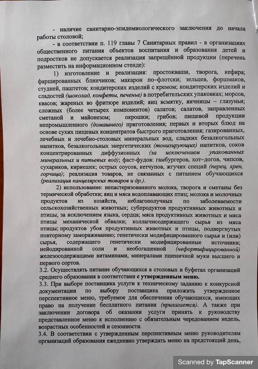 приказ о запрете отдельных видов питания
