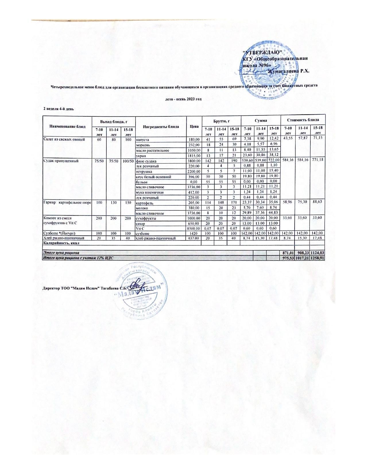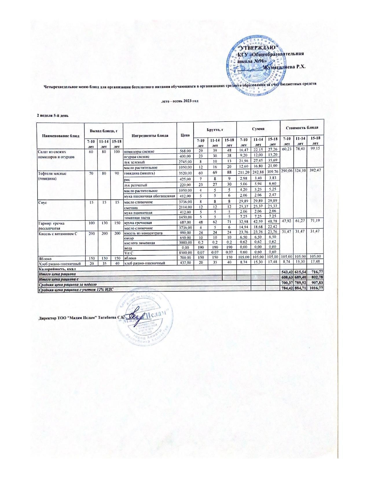 Меню лето-весна 2023 5 неделя 1-5 день