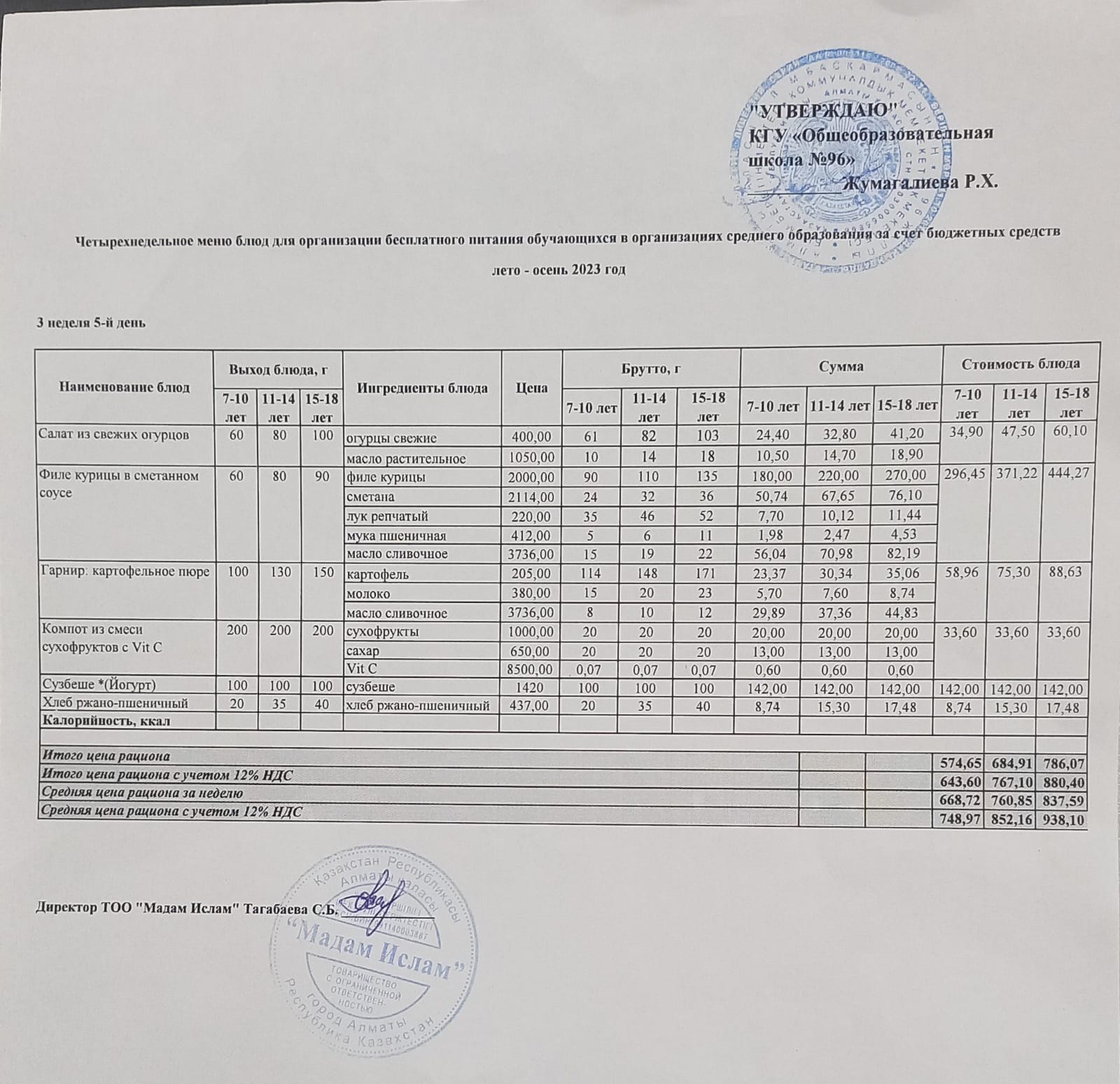 Меню лето-весна 2023 5 неделя 1-5 день