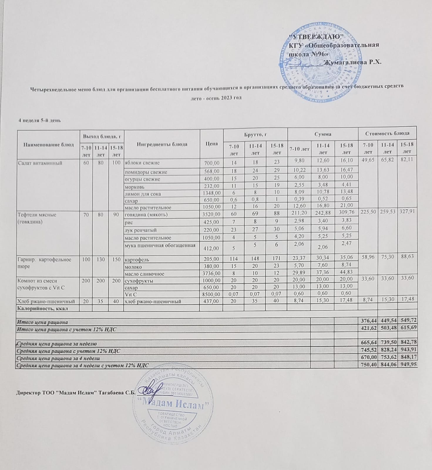 Меню лето-весна 2023 5 неделя 1-5 день