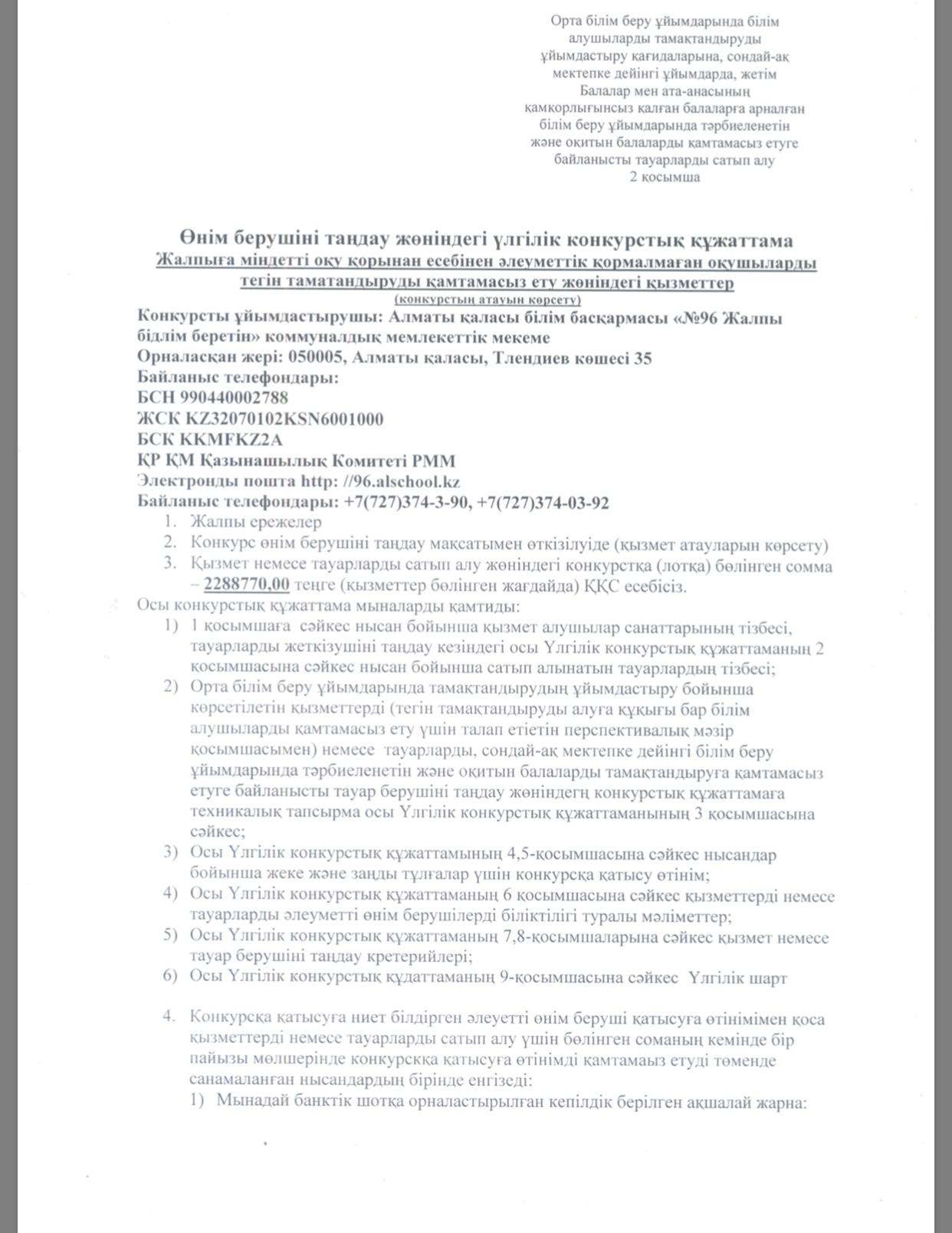 КГУ «Общеобразовательная школа №96» Управления образования г.Алматы