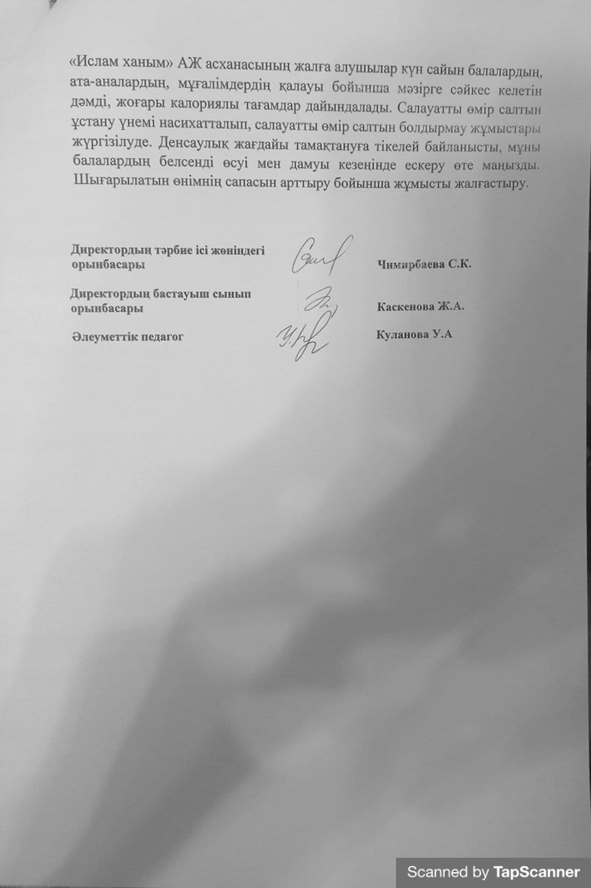 Асханадағы санитарлық-гигиеналық талаптар сақтау анықтамасы