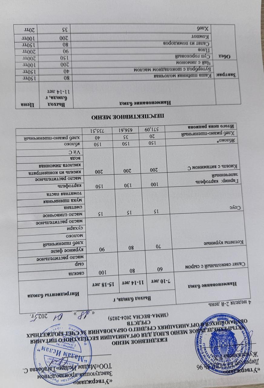 График дежурство учителей по столовой КГУ ОШ № 96 на 2024-2025 учебный год. 1-смена 08:00-13:00